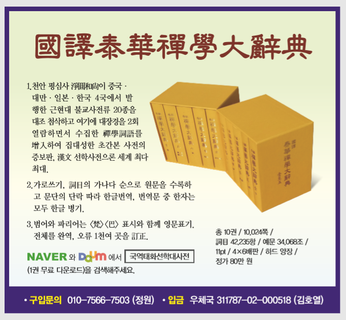| 국역태화선학대사전(國譯泰華禪學大辭典) - 현대불교신문 기사 (0) | 2019.02.15 |